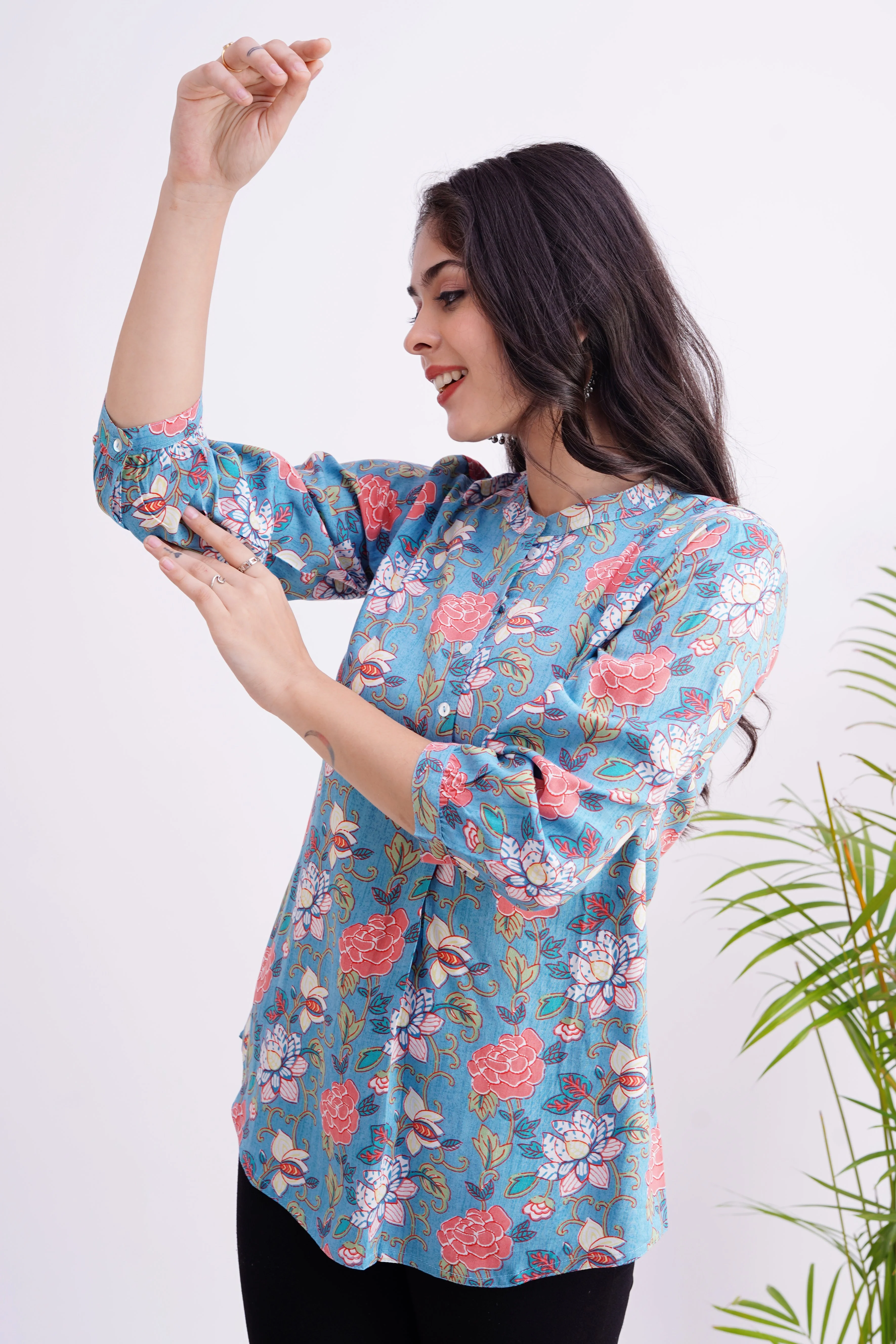 Breathable Rayon Casual Short Top Blue