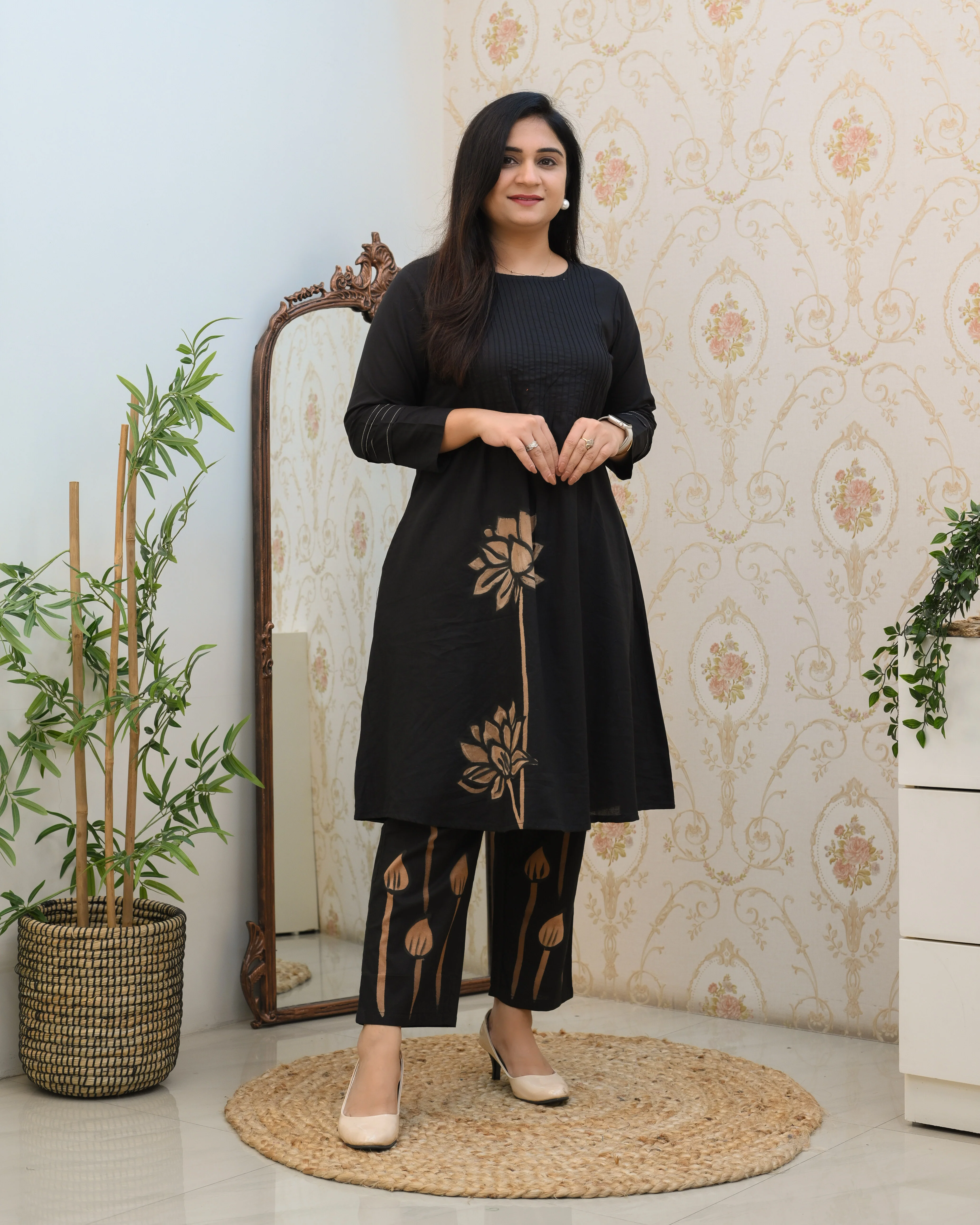 Cotton Handbrush Painted A-line Coord Set