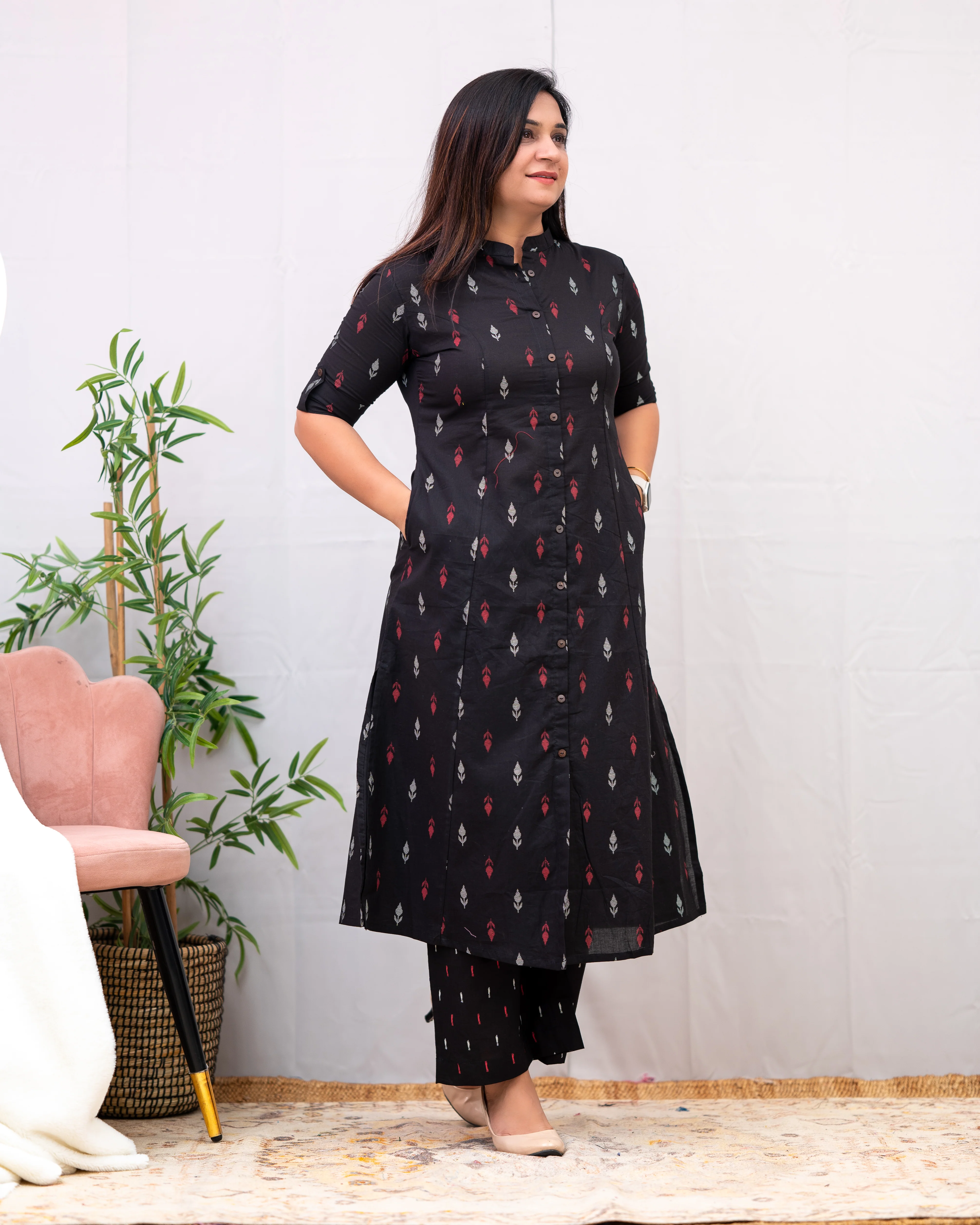 This Ikkat Cotton A-line Casual Coord Set is perfect for office and daily wear. Its A-line fit flatters all body types and the two convenient side pockets add functionality. Made of cotton, it's both comfortable and stylish. Ideal for those looking for a versatile and practical outfit.