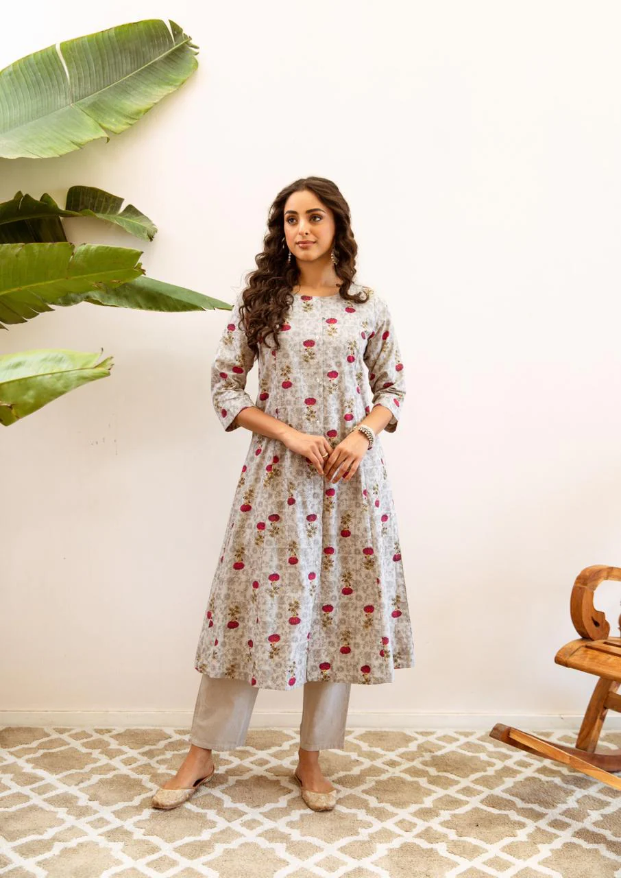 Kush Cotton Handblock Print A-line Pant Set